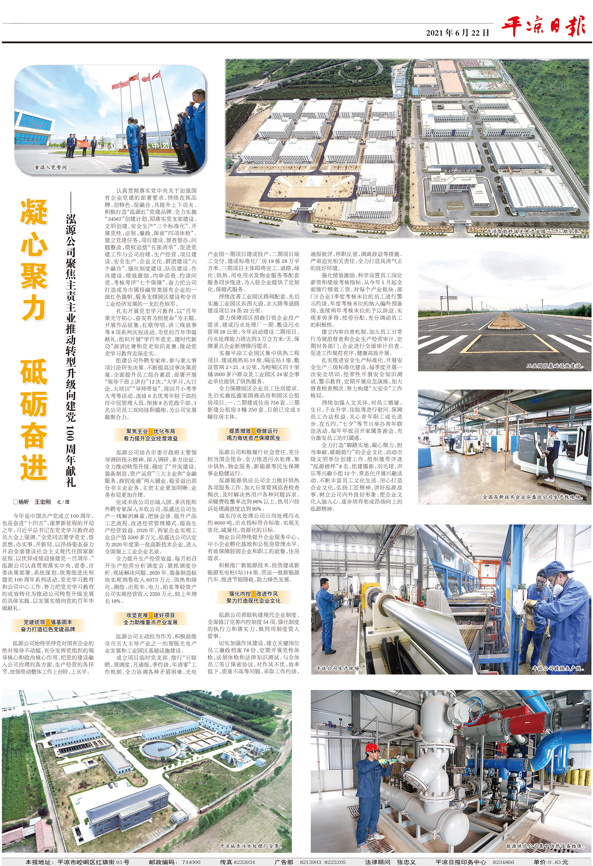 平凉日报专栏刊登《凝心聚力 砥砺奋进——泓源公司聚焦主责主业推动转型升级向建