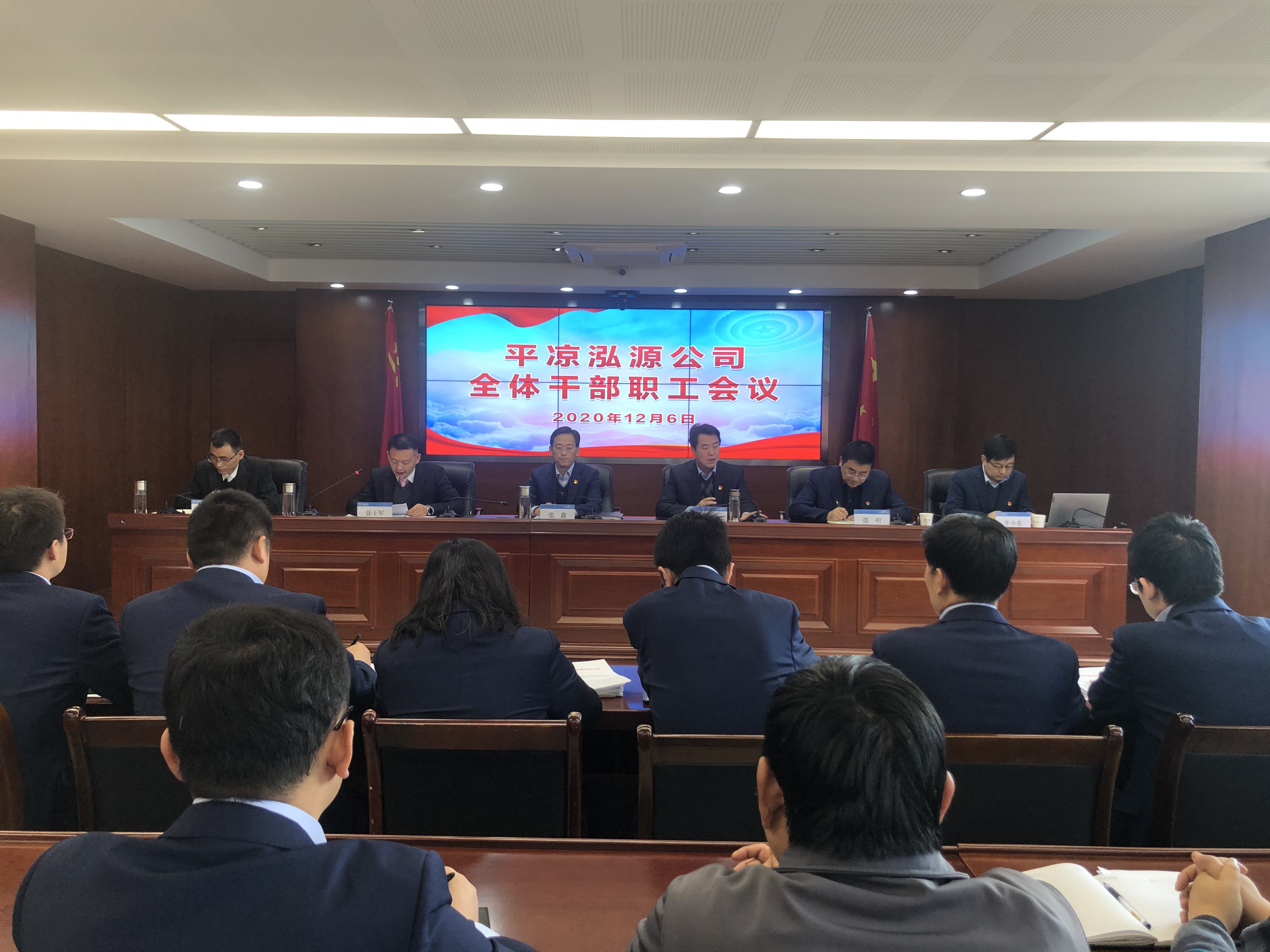 2020-12-0612月6日,泓源公司召开全体职工会议,公司主要领导主持会议并讲话。会上,宣读了公司聘任总经理、副总经理的通知;新任总经理作了表态发言。会议指出,新聘任的总经理、副总经理具有丰富的企业管理经验、敏锐的市场洞察力,弥补了公司缺乏市场型高级管理人员的不足,