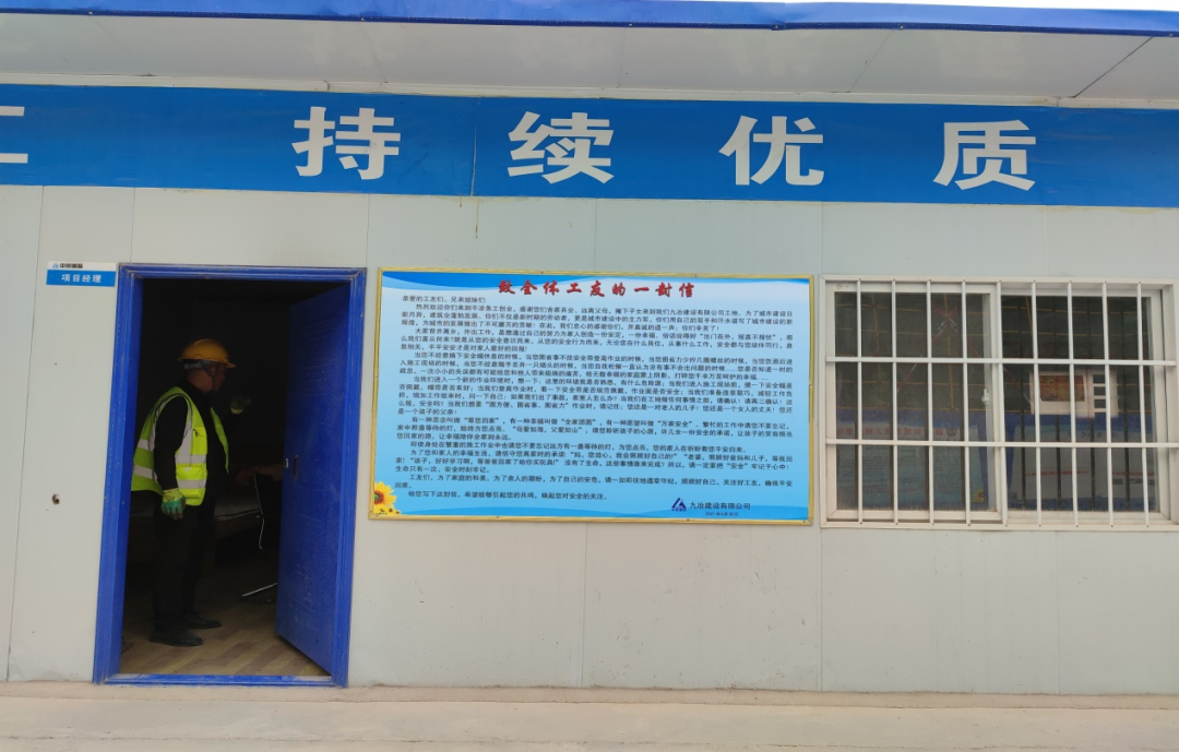 2021-06-02为进一步落实省市关于安全生产工作的部署要求,结合第20个全国“安全生产月”,公司号召各项目施工单位开展“告工友的一封信”活动。孵化基地三期施工方九冶公司和公租房三期项目施工方甘肃二建高度重视,积极响应,迅速书写《告工友的一封信》并制作张贴在项目工地醒